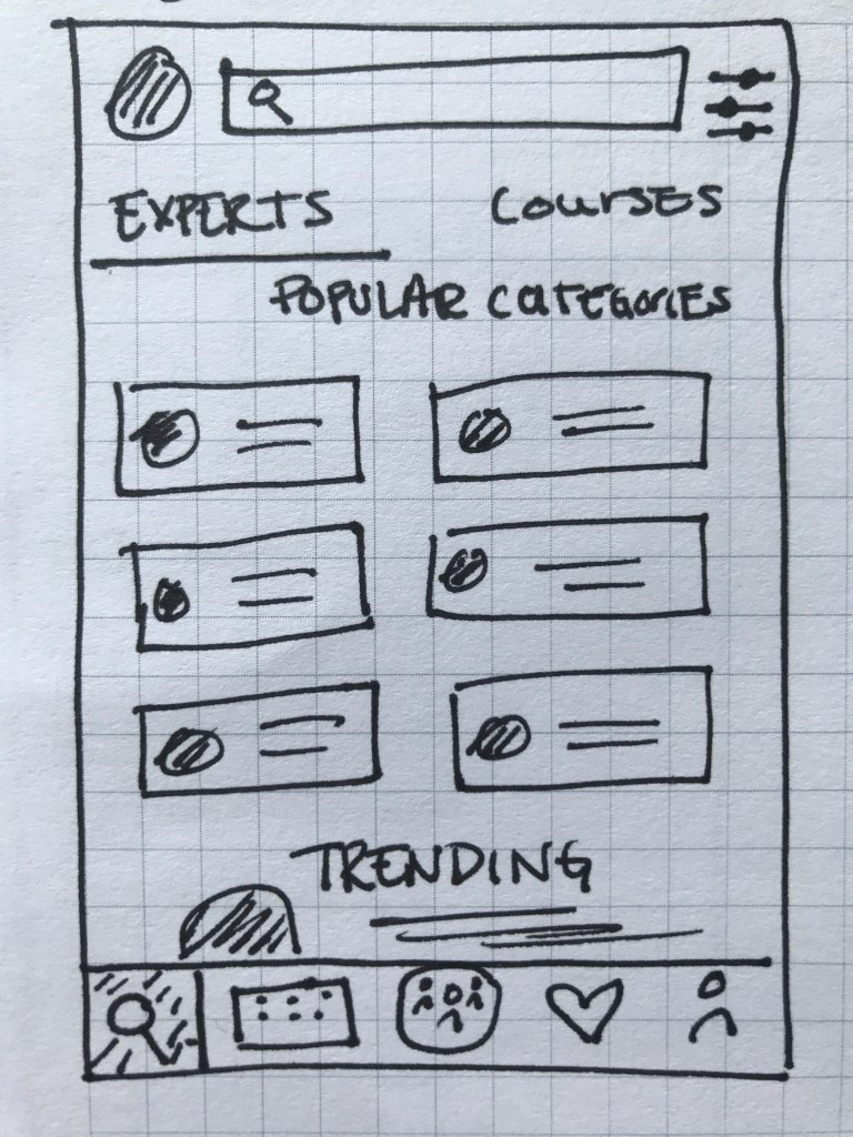 Throughout the design, my wireframes were created in low, mid and hi- fidelity. Low-fidelity wireframes were hand sketched which allowed me to quickly generate ideas and iterate them more easily.