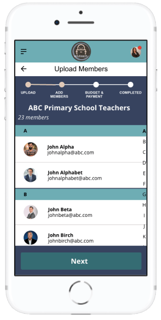 With a more defined prototype, the amount of feedback began to increase. This feedback highlighted some flaws in the design, especially in regards to the user flow. This was most notably seen in the ‘creating a school account’ section. Firstly, when trying to import members into a group. Here it wasn’t clear who should go into a specific group, mostly because the group name came after the members were already imported. Additionally, the process to specifically set a budget for individual members was not as transparent as I thought. I thought more about this and other feedback and decided to add the group name as the first requirement when creating a group in addition to allowing users to set a yearly amount plus an individual amount per person when setting a budget.
